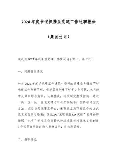 / 2024年度书记抓基层党建工作述职报告(集团公司)