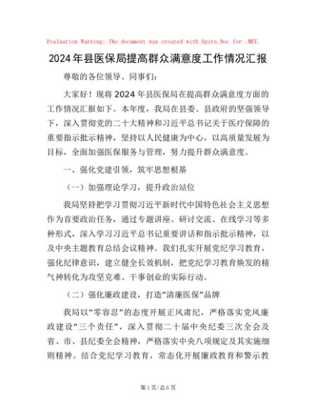 / 2024年县医保局提高群众满意度工作情况汇报