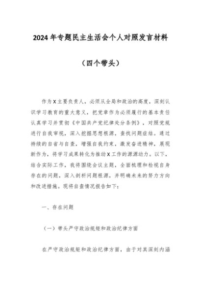 / 2024年专题民主生活会个人对照发言材料(四个带头)