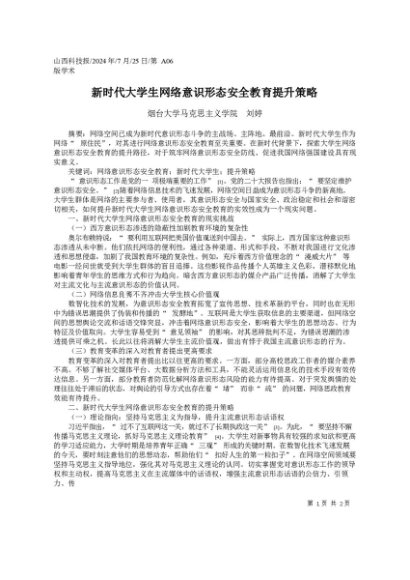 / 2024.07新时代大学生网络意识形态安全教育提升策略_烟台大学马克思主义学院__刘婷