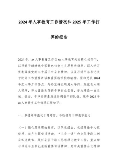 / 2024年人事教育工作情况和2025年工作打算的报告