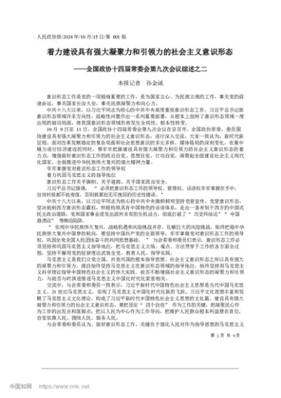 / 2024.10着力建设具有强大凝聚力和引领力的社会主义意识形态_本报记者__孙金诚