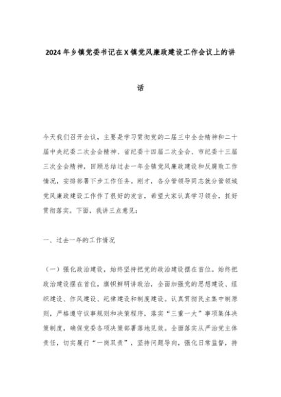 / 2024年乡镇党委书记在X镇党风廉政建设工作会议上的讲话