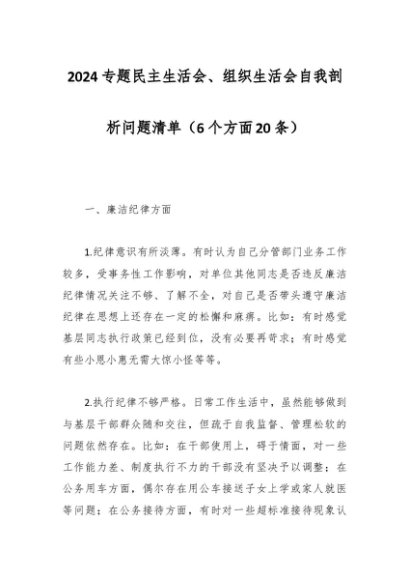 / 2024专题民主生活会、组织生活会自我剖析问题清单(6个方面20条)