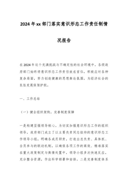 / 2024年xx部门落实意识形态工作责任制情况报告