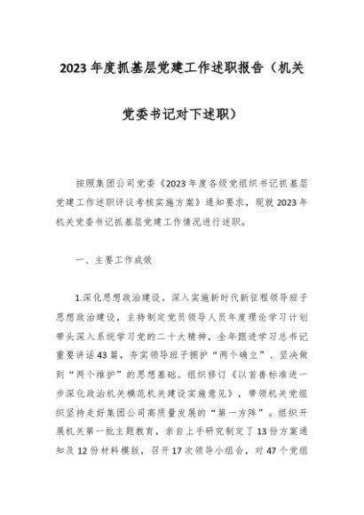 / 2023年度抓基层党建工作述职报告(机关党委书记对下述职)