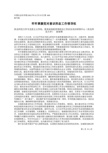 2022.12.15西北师范大学马克思主义学院、教育部高校思想政治工作队伍培训研修中心(西北师范大学)郝相赟:牢牢掌握党对意识形态工作领导权