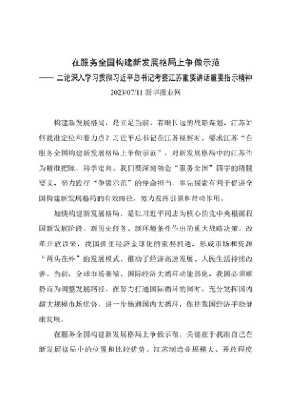 / 20230711 新华日报:二深入学习贯彻习近平总书记考察江苏重要讲话重要指示精神(新发展格局)