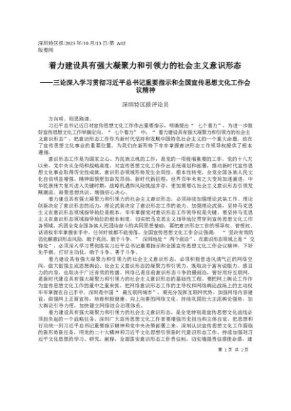 / 2023.10.13深圳特区报评论员:着力建设具有强大凝聚力和引领力的社会主义意识形态