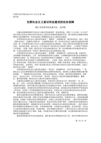 2023.01.06铜仁学院国学院党委书记皮坤乾:完善社会主义意识形态建设的法治保障