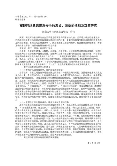 / 2022.11.08湖南大学马克思主义学院许伟:高校网络意识形态安全的意义、面临的挑战及对策研究