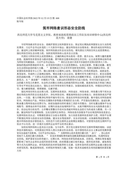 2022.12.15西北师范大学马克思主义学院、教育部高校思想政治工作队伍培训研修中心(西北师范大学)袁健:筑牢网络意识形态安全防线