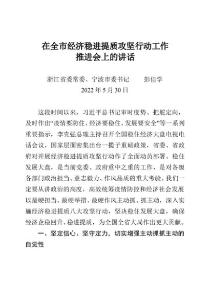 / 2022年5月30日在全市经济稳进提质攻坚行动工作推进会上的讲话(宁波市)