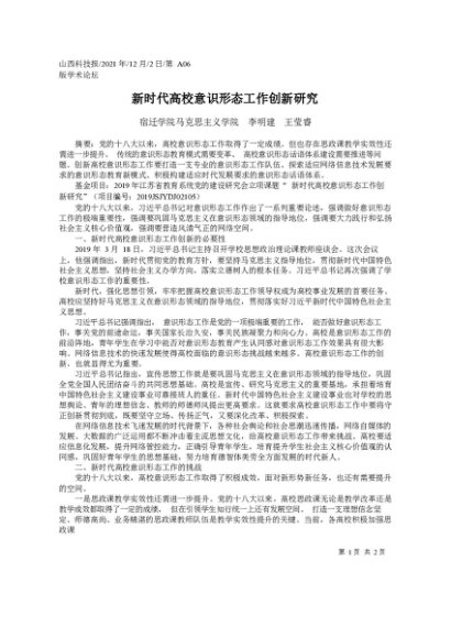 2021.12.02宿迁学院马克思主义学院李明建王莹睿:新时代高校意识形态工作创新研究