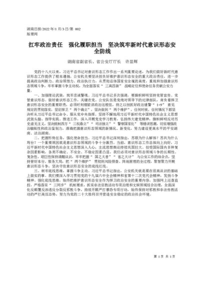 / 2022.01.03湖南省副省长、省公安厅厅长许显辉:扛牢政治责任强化履职担当坚决筑牢新时代意识形态安全防线