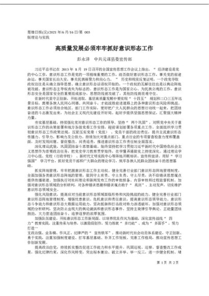 / 2021.06.16彭永泽中共元谋县委宣传部:高质量发展必须牢牢抓好意识形态工作