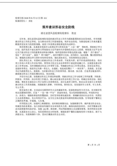 / 2020.08.12湖北省团风县检察院检察长张亚:筑牢意识形态安全防线
