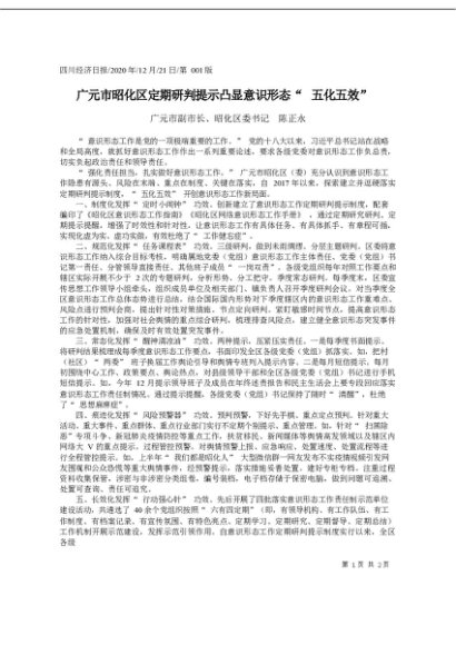 / 2020.12.21广元市副市长、昭化区委书记陈正永:广元市昭化区定期研判提示凸显意识形态五化五效