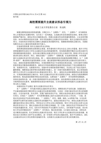 / 2022.11.04南京工业大学党委办公室狄远帆:高校需要提升主流意识形态引领力