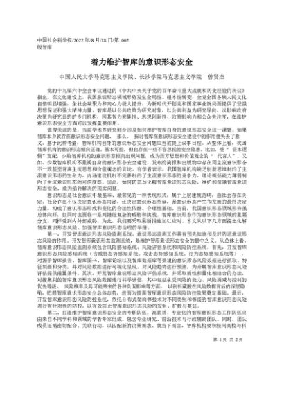 / 2022.08.18中国人民大学马克思主义学院、长沙学院马克思主义学院曾贤杰:着力维护智库的意识形态安全