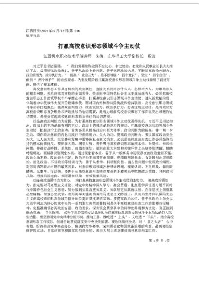 / 2021.05.12江西机电职业技术学院讲师朱倩东华理工大学副校长杨波:打赢高校意识形态领域斗争主动仗