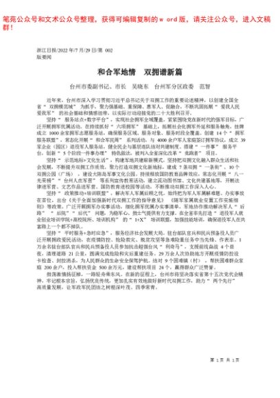 / 2022.07.29台州市委副书记、市长吴晓东台州军分区政委范智:和合军地情双拥谱新篇——笔苑公众号整理