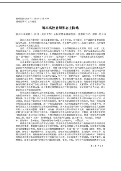 / 2021.03.17贵州大学副校长贵州〈贵州大学〉人民武装学院副政委、党委副书记、院长张大林:筑牢高校意识形态主阵地