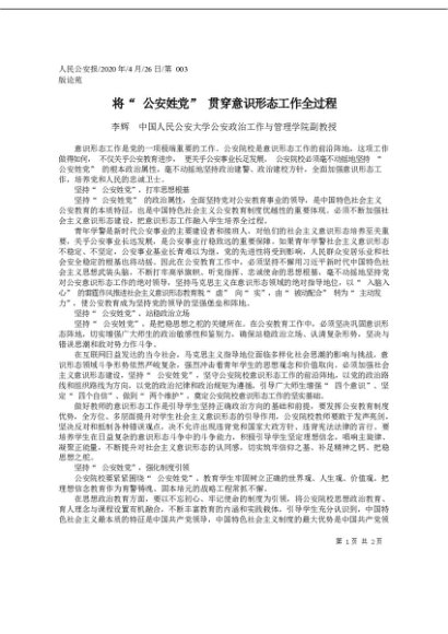 / 2020.04.26李辉中国人民公安大学公安政治工作与管理学院副教授:将公安姓党贯穿意识形态工作全过程