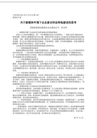 / 2021.03.19晋能控股煤业集团永定庄煤业公司武玉坤:关于新媒体环境下企业意识形态阵地建设的思考