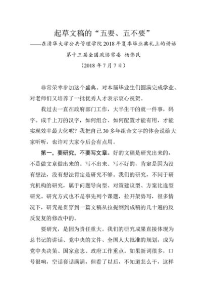 / 20180707 杨伟民:起草文稿的“五要、五不要”(全国政协)