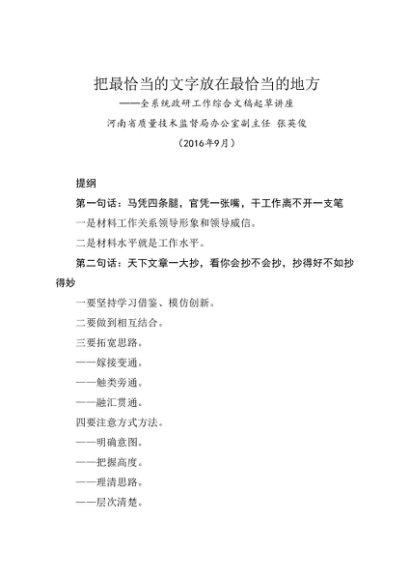 20160900 张英俊:把最恰当的文字放在最恰当的地方(河南省质量技术监督局)