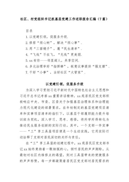 / (7篇)社区、村党组织书记抓基层党建工作述职报告汇编