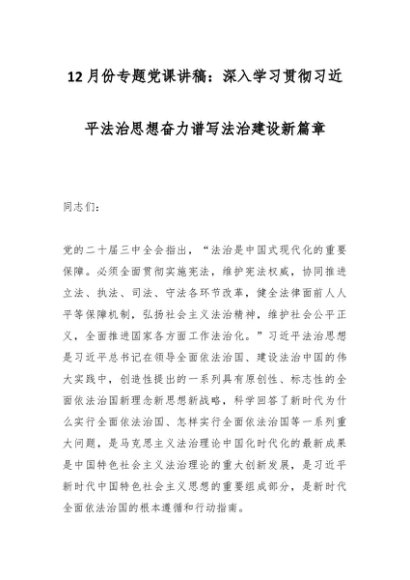 / 12月份专题党课讲稿:深入学习贯彻总书记法治思想奋力谱写法治建设新篇章