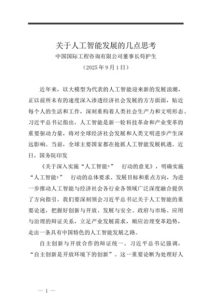 / 署名文章:20250901关于人工智能发展的几点思考——中国国际工程咨询有限公司董事长苟护生