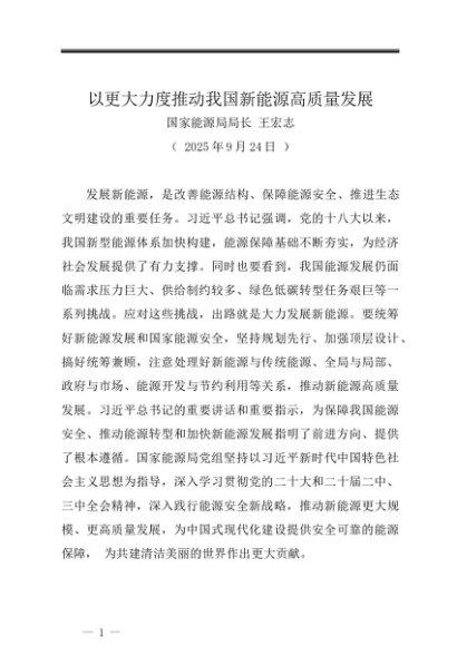 署名文章:20250924以更大力度推动我国新能源高质量发展——国家能源局局长 王宏志