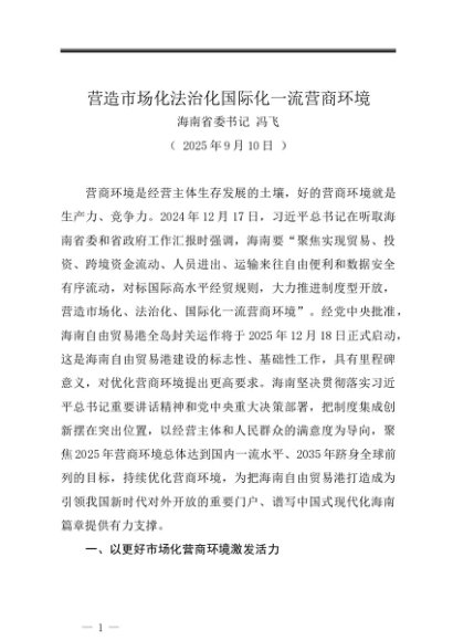 署名文章:20250910营造市场化法治化国际化一流营商环境——海南省委书记 冯飞