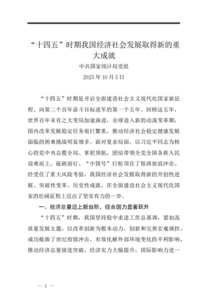 署名文章:20251005“十四五”时期我国经济社会发展取得新的重大成就——中共国家统计局党组