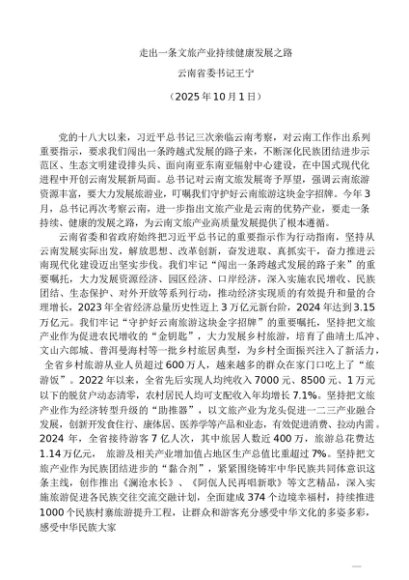 / 署名文章:20251001走出一条文旅产业持续健康发展之路——云南省委书记王宁