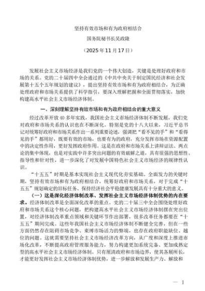 署名文章:20251117坚持有效市场和有为政府相结合——国务院秘书长吴政隆