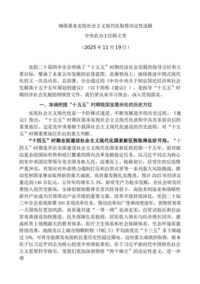 署名文章:20251119确保基本实现社会主义现代化取得决定性进展——中央农办主任韩文秀
