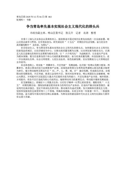 署名文章:2025.12争当青岛率先基本实现社会主义现代化的排头兵_市政协副主席、崂山区委书记...升__记者__衣涛__整理