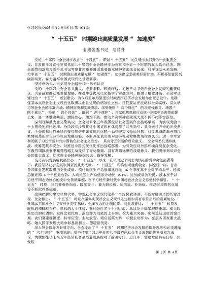 / 署名文章:2025.12“十五五”时期跑出高质量发展“加速度”_甘肃省委书记__胡昌升