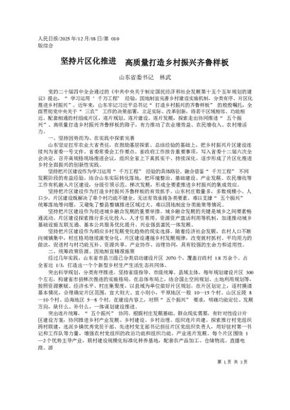 / 署名文章:2025.12坚持片区化推进__高质量打造乡村振兴齐鲁样板_山东省委书记__林武