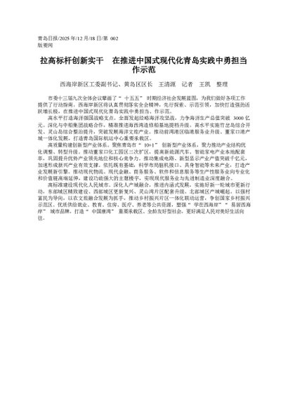 署名文章:2025.12拉高标杆创新实干__在推进中国式现代化青岛实践中勇担当作示范_西海岸新区工委副书记、黄岛...源__记者__王凯__整理