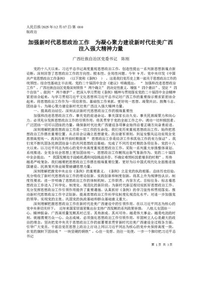 署名文章:2025.12加强新时代思想政治工作__为凝心聚力建设新时代壮美广西注入强大精神力量_广西壮族自治区党委书记__陈刚