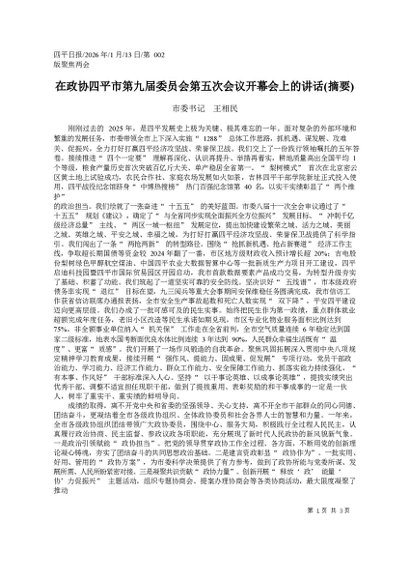 / 署名文章:20260130在政协四平市第九届委员会第五次会议开幕会上的讲话(摘要)_市委书记__王相民
