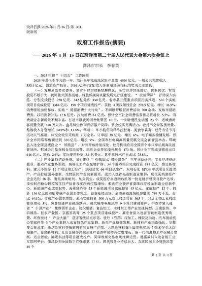 署名文章:20260130政府工作报告(摘要)_菏泽市市长__李春英