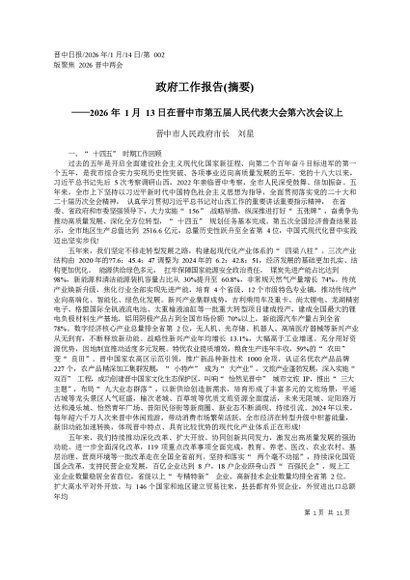 / 署名文章:20260130政府工作报告(摘要)_晋中市人民政府市长__刘星