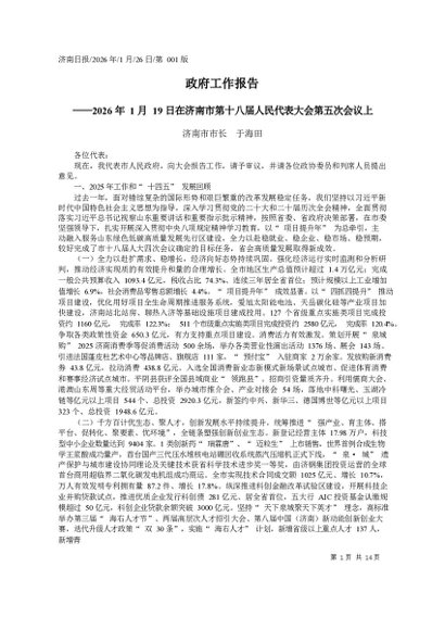 署名文章:20260130政府工作报告_济南市市长__于海田
