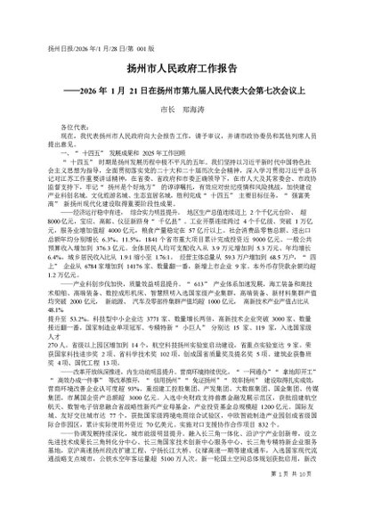 署名文章:20260130扬州市人民政府工作报告_市长__郑海涛